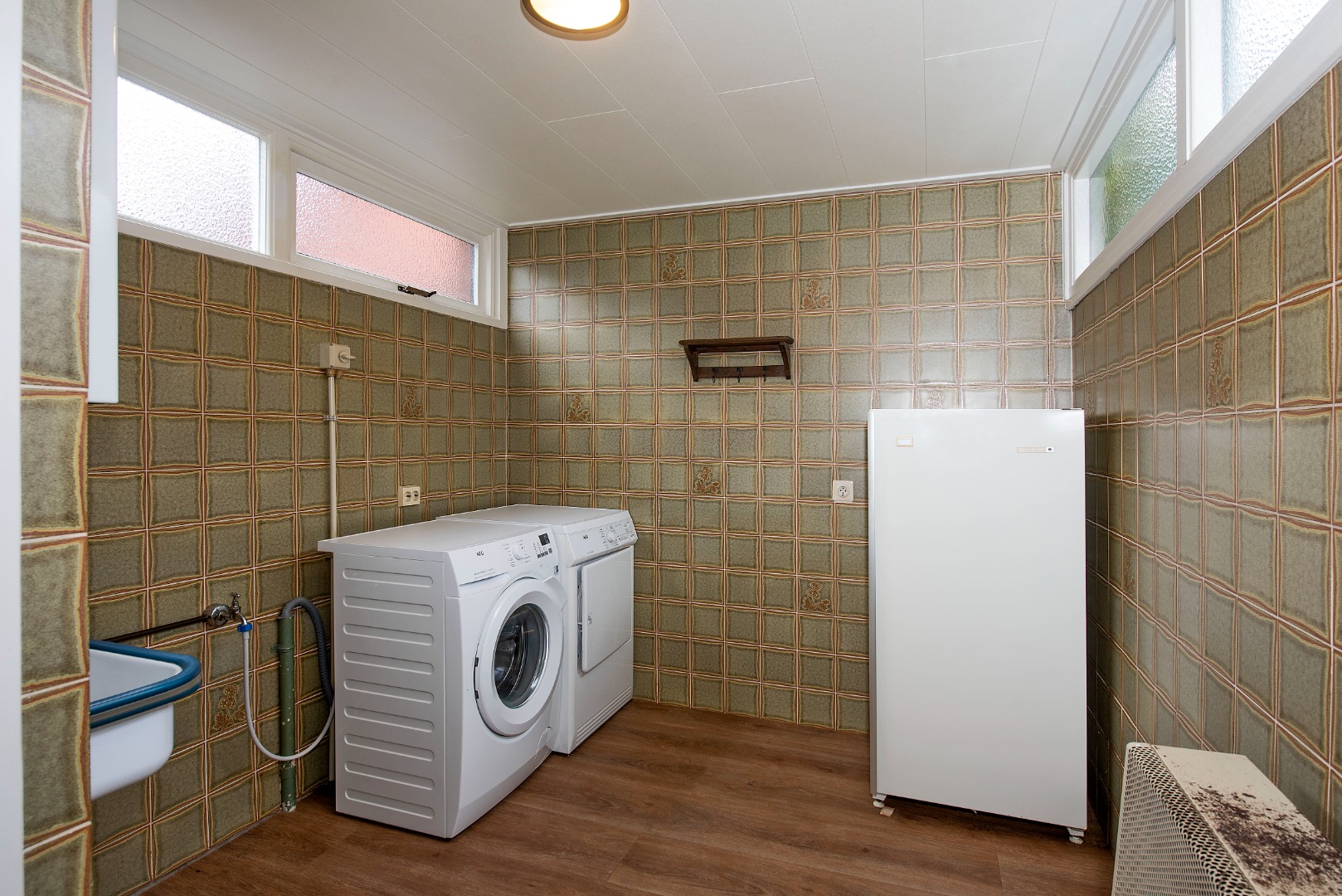 entree, hal, meterkast, kelderkast, trapopgang, woonkamer, keuken, bijkeuken met toilet en witgoed-aansluitingen, vrijstaande garage en ruime overkapping.