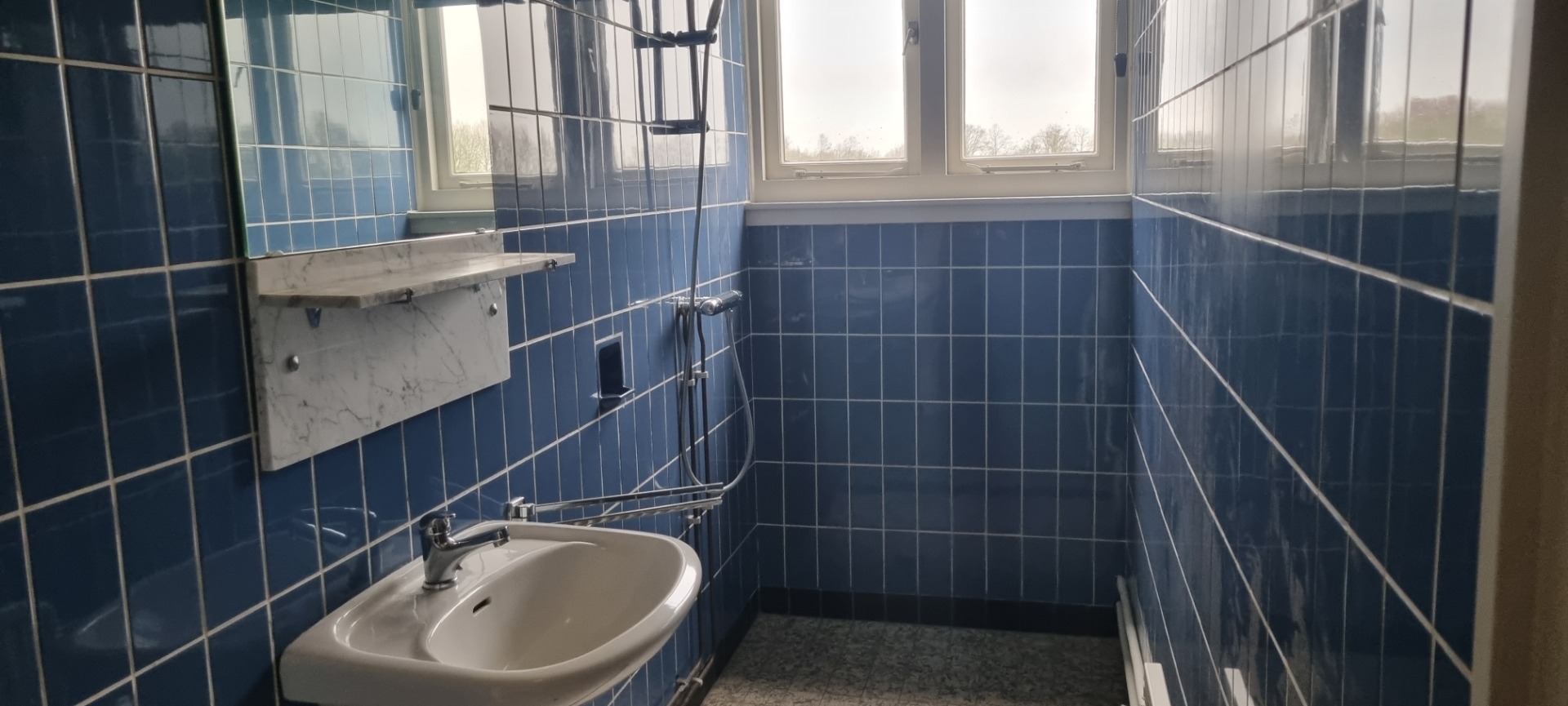overloop, 2 slaapkamers, douche met wastafel, toilet.